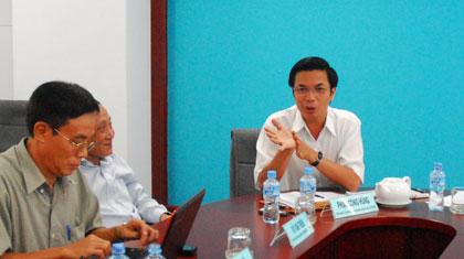 Thẩm phán Phạm Công Hùng (phải) phát biểu trong một cuộc tọa đàm về hoạt động tranh tụng do báo Pháp Luật TP.HCM tổ chức. Ảnh: HTD